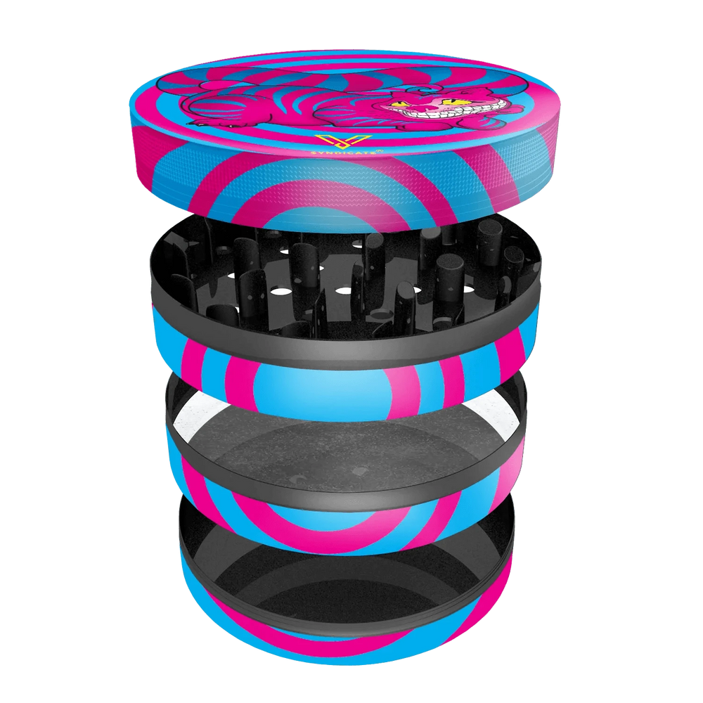 Our SharpShred 360 grinders are straight out of Wonderland. The Seshigher Cat design is high def printed onto our amazing SharpShred grinders for the purrfect grinder. The grinder teeth are sharp enough to cut through any flower so you can spend more time going down the rabbit hole and less time worrying about grinding your herb.